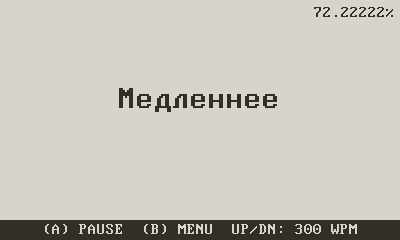 D-PAD DOWN: Slower (-10 wpm)
